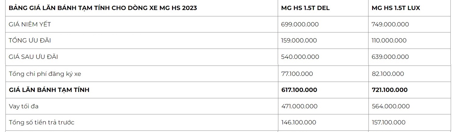 Hiện nay MG Đà Nẵng có khuyến mãi 10 triệu đồng cho khách hàng mua xe MG HS, như vậy giá lăn bánh xe MG HS tại Đà Nẵng sẽ là: MG HS DEL: 607.000.000 đồng, MG HS LUX: 711.000.000 đồng.
